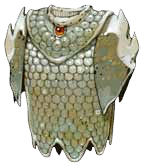 La cota de escamas está compuesta de docenas de pequeñas placas de metal superpuestas, e incluye guanteletes.
