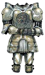 Esta armadura de metal incluye guanteletes, pesadas botas de metal, un yelmo con visor, y una gruesa capa de acolchado que se lleva debajo de la armadura. cada armadura debe ajustarse individualmente a su propietario por un maestro armero, aunque una armadura capturada se puede ajustar a un nuevo propietario al coste de entre 200 y 800 (2d4 x 100) piezas de oro.