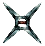Desde un anillo central de metal, cuatro cuchillas estrechas de metal se extienden como las puntas de una rosa de los vientos. Quien lo empuña puede apuñalar con el cuchillo de estrella o lanzarlo.