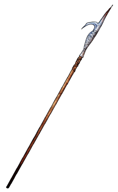 Una bisarma es un mango de 8 pies (2, 40 m) de longitud, con una hoja y un gancho montados en el extremo.