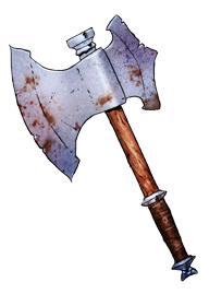 Un hacha de guerra enana lleva una cabeza de hacha grande y adornada montada al extremo de un grueso mango, haciéndola demasiado grande para usarla a una mano sin un entrenamiento especial; por lo tanto, se considera un arma exótica. Un personaje Mediano puede utilizar un hacha de guerra enana a dos manos como un arma marcial, o una criatura Grande puede usarla a una mano de la misma manera. Un Enano trata un hacha de guerra enana como arma marcial, incluso cuando la usa a una mano.
