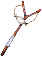 Puedes lanzar piedras normales con un bastón honda mediano, pero las piedras no son tan densas o tan redondas como las balas. Así, un ataque de ese tipo inflige daño como si el arma hubiera sido diseñada para una criatura de una categoría de tamaño más pequeña que la tuya, y sufres un penalizador -1 a las tiradas de ataque.