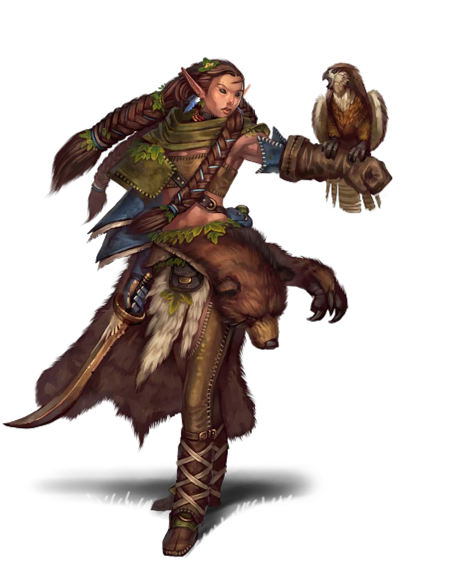El guardián de la Naturaleza es un amo de los entornos salvajes y es más poderoso en cualquiera de los diversos terrenos que ha estudiado. Su compañero animal y él forman un potente equipo. Es un batidor excelente y un combatiente versátil, capaz de complementar sus habilidades con conjuros para cubrir casi cualquier rol.
