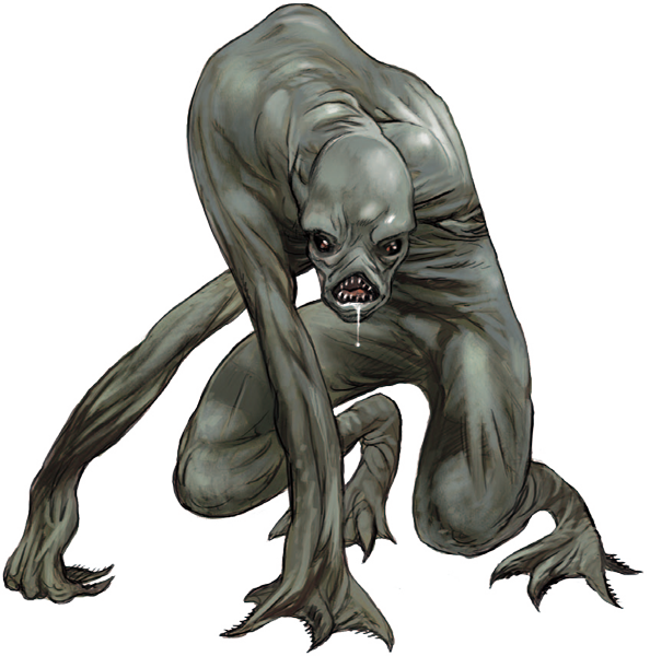 Esta desdichada y arqueada criatura posee brazos largos y flexibles, como tentáculos, rematados por cinco grandes garras llenas de espinas.