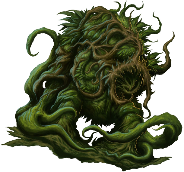Una masa enmarañada de enredaderas y limo empapado se alza sobre dos troncos a modo de patas, apestando a putrefacción, y a tierra recientemente removida.