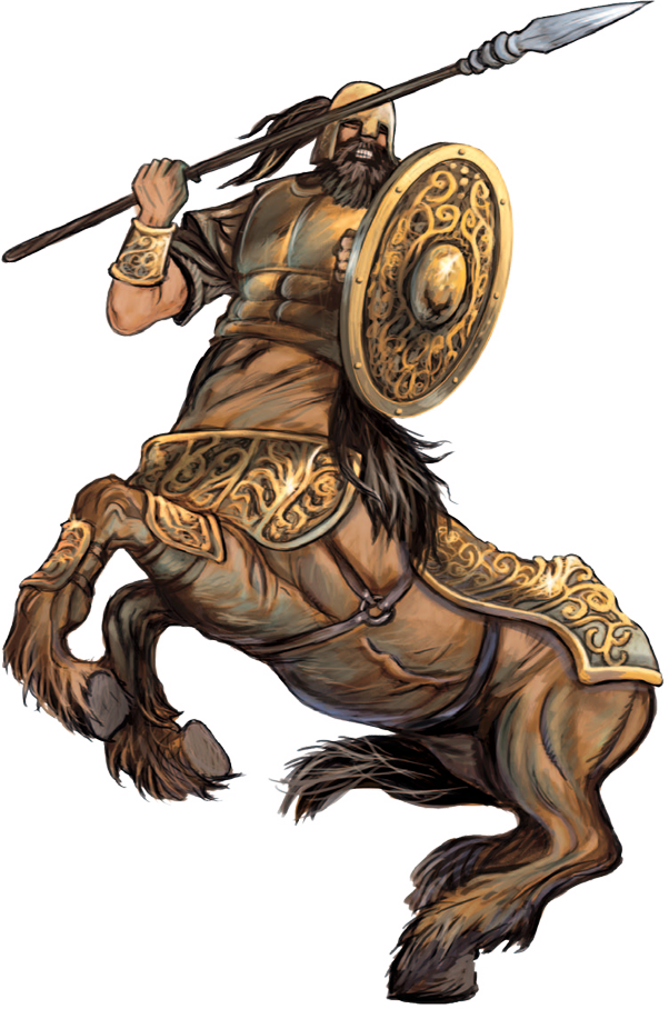Esta criatura posee el tronco superior bronceado de un guerrero veterano, y la parte inferior del cuerpo de un elegante caballo de guerra.