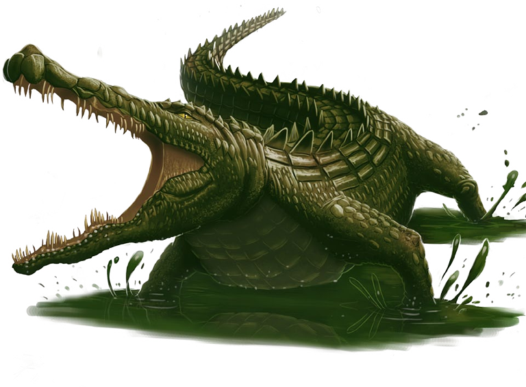 Un cocodrilo típico mide 14 pies (unos 4,5 m) de longitud y pesa 1.400 libras (630 kg), pero existen especies más grandes. Puedes utilizar estas estadísticas para criaturas similares, como los caimanes.