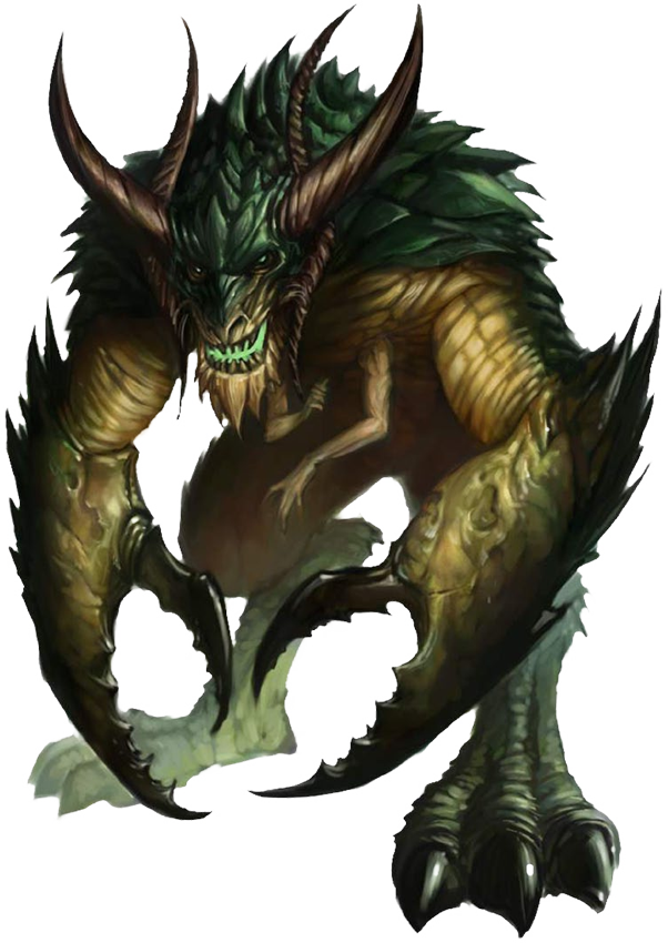 Caótico maligno, Enorme, Ajeno (Caótico, Demonio, Extraplanario, Maligno).