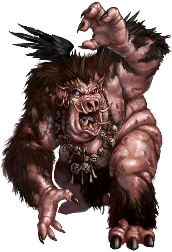 Este infernal, una bestia corpulenta y muy alta, posee la horrible cabeza de un jabalí, y unos brazos terminados en manos gruesas de cuatro dedos.