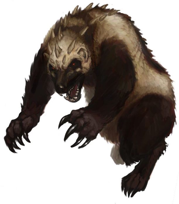 Un glotón que sufre daño en combate entra en un estado de furia en su siguiente turno, clavando las garras y mordiendo como un loco hasta que él o su oponente están muertos. Obtiene +4 a la Los glotones son territoriales, especialmente cuando buscan comida, y se sabe que han sobrevivido a depredadores mucho más grandes, como los osos negros.