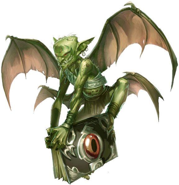 Esta criatura vagamente humana es de tamaño similar a un gato, pero se parece más a un diablo alado y con colmillos.