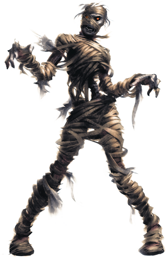 Este humanoide, envuelto de la cabeza a los pies en antiguas tiras de lino que se caen a trozos, se mueve arrastrando los pies.