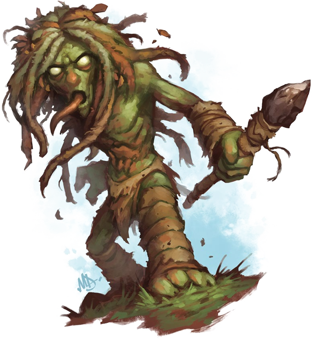 Las tribus de pigmeos del moho viven en comunidades muy unidas, y custodian Pigmeo del moho Bajito, delgado y verde, este pequeño humanoide esgrime una lanza, y de sus brazos, vientre y piernas cuelgan zarcillos de hongo. ferozmente sus áreas de moho rojizo. Los pigmeos del moho no pueden hablar: se comunican mediante un idioma primitivo a base de tamborileos, golpeteos y chasquidos rítmicos. Las partidas de caza hacen resonar estos mensajes a través de las cavernas por las que viajan. Los pigmeos del moho miden de 2 a 4 pies (60 cm a 1,2 m) de altura y pesan entre 15 y 45 libras (6,75-20,25 kg).