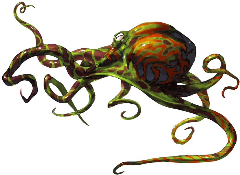 Un pulpo puede emitir una esfera de tinta de 10 pies (3 m) de radio una vez por minuto como acción gratuita. La tinta proporciona ocultación total en el agua, y persiste durante 1 minuto.