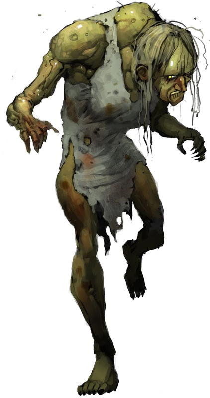 Mechones de pelo oscuro y putrefacto caen sobre los rasgos de esta delgada y enfermiza vieja, con la piel de color verdoso.