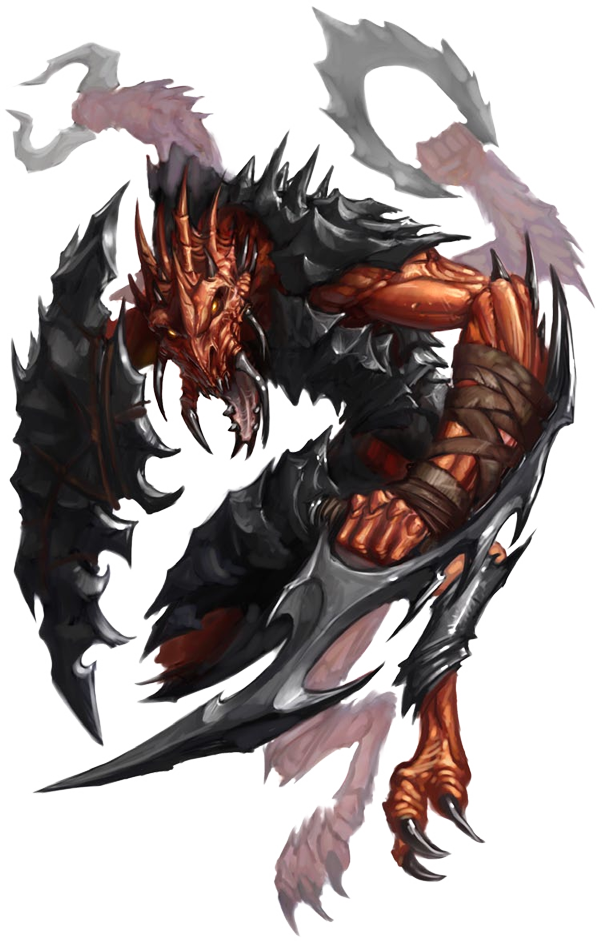 Este humanoide de color rojo fuego parece ser una extraña mezcla de insecto y reptil, con cuatro brazos, y unas mandíbulas llenas de colmillos que se mueven continuamente.