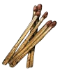 La sustancia alquímica que hay en el extremo de este pequeño palito de madera se enciende cuando se rasca contra una superficie dura. Crear una llama con una ramita yesquera es mucho más rápido que crearla con pedernal, acero (o con una lupa), y yesca. Encender una antorcha con una ramita yesquera es una acción estándar (en lugar de una acción de asalto completo), y encender con una de ellas cualquier otro fuego es por lo menos una acción estándar.