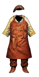 Esta muda incluye una camisa con botones, una falda o pantalones que se cierran con una lazada, zapatos, y quizá una gorra o sombrero. También puede incluir un cinturón, o un mandil de cuero o de tela para llevar herramientas.