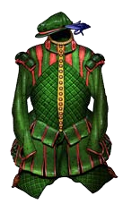 Esta muda de ropas llamativas e incluso estridentes está pensada para el espectáculo. Si bien parece extravagante, su práctico diseño permite hacer piruetas, bailar, caminar por la cuerda floja, o simplemente correr (si la audiencia no se toma a bien el espectáculo).