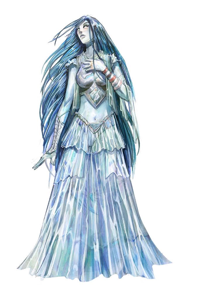 Misteriosos humanoides con carne azul pálido y sangre transparente como las aguas de un arroyo, los samsaranos son criaturas antiguas incluso en su juventud. La vida de un samsaran no es una progresión lineal desde el nacimiento hasta la muerte, sino más bien un círculo de nacimiento a muerte y renacimiento. Cada vez que un samsaran muere, se reencarna de nuevo como un samsaran joven para vivir una nueva vida. Sus recuerdos pasados siguen siendo vagos e indistintos, y cada nueva encarnación es una criatura y una personalidad tan diferentes como lo es un niño para un padre.